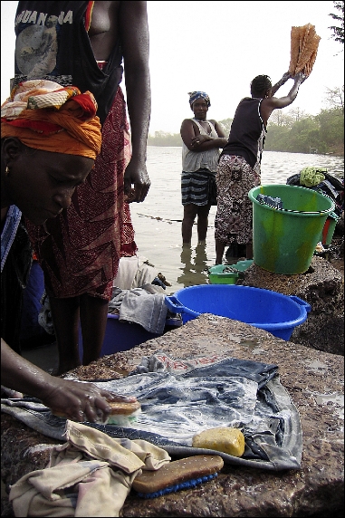 Vaskedag hver dag - her i slumbyen Basse Sante Su i Gambia.